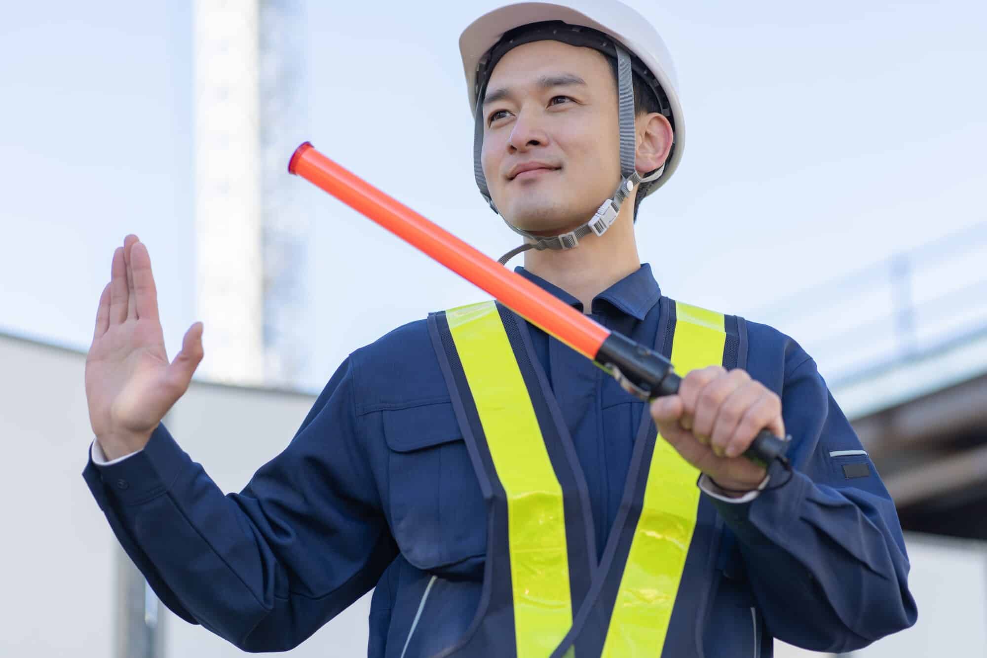 未経験OK!シニア世代活躍中の交通誘導警備スタッフ 工事現場で車や通行人を誘導し、